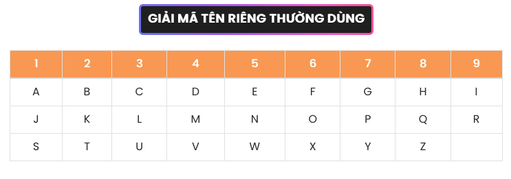 Bước 1: Đầu tiên bạn phải nắm rõ bảng chữ cái tương ứng với các con số, bạn hãy nhìn vào hình bên dưới để đối chiếu nhe.