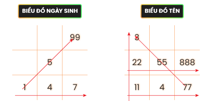 Bước 5: Kết hợp biểu đồ ngày sinh và biểu đồ tên lại, ta được 1 biểu đồ mới.